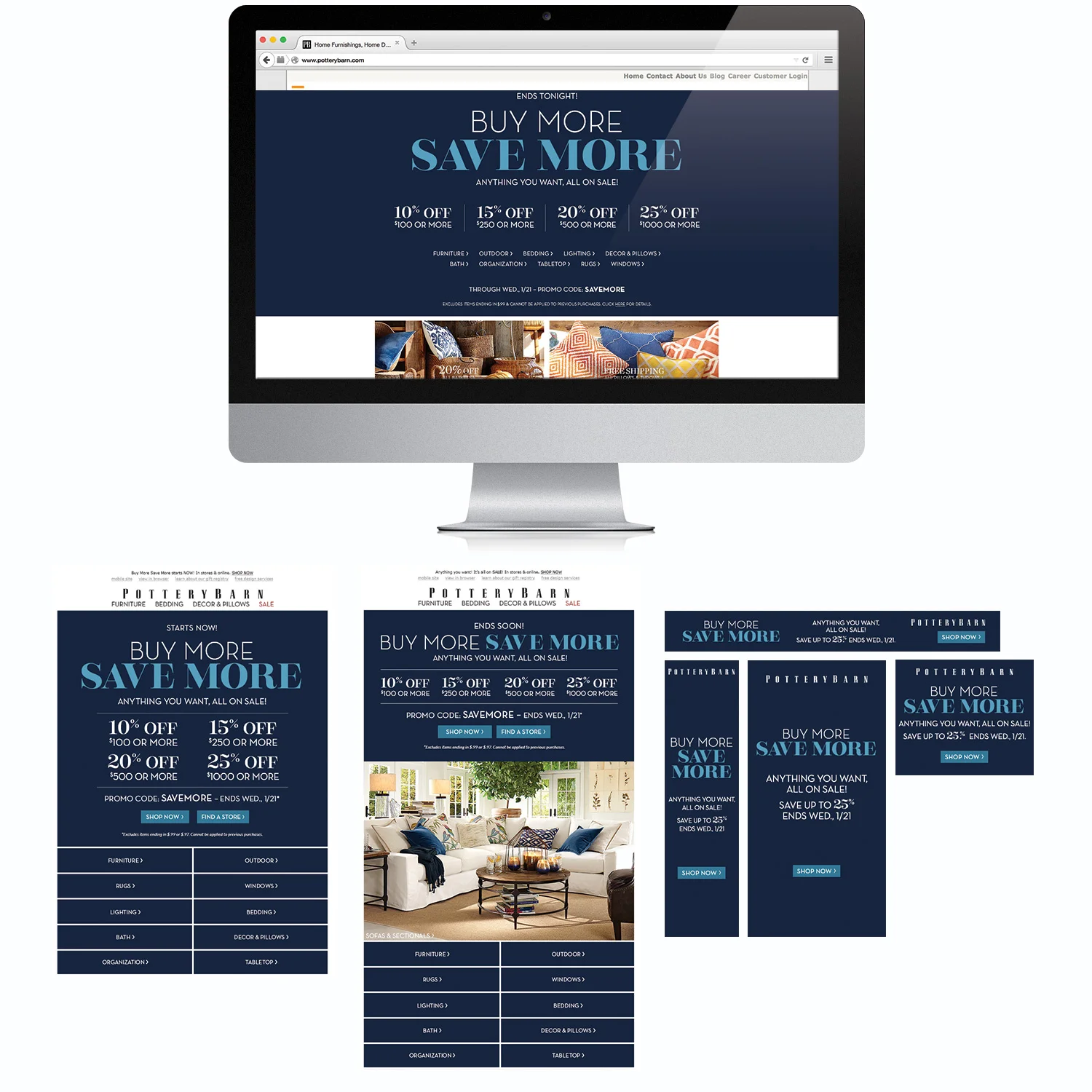 As a member the in-house E-Commerce Creative team for Pottery Barn/Williams-Sonoma Inc., I was responsible for the design and production of various site page layouts, targeted display ads and email marketing. I later concentrated solely on email design, helping create between 15-20 per week – sometimes up to 30 per week.